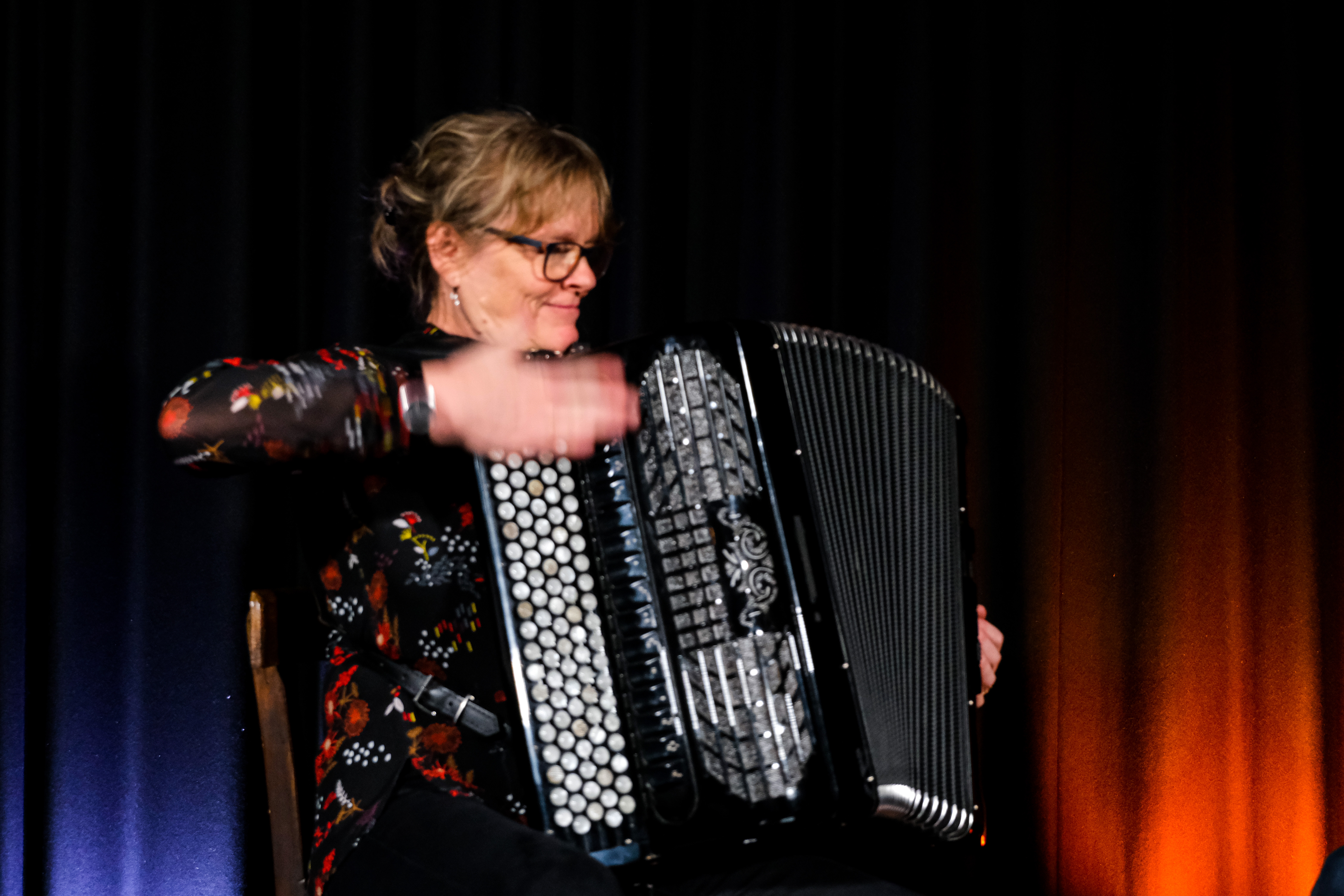 OTINE VAN ERP speelt accordeon. Zij studeerde aan het Tilburgs conservatorium en na een carrière die haar langs internationale podia voerde is zij nu ook actief in het cultuuronderwijs. Daarnaast geeft ze les op haar instrument in ’t Klooster te Nuenen. Ook is zij de drijvende kracht achter het Windkrachtfestival en het festival ‘Cacao aan de kade’ in Helmond. ‘Voor dit programma heb ik onder een aantal gedichten muziek gecomponeerd. De accordeon is een instrument dat heel geschikt is om verschillende sferen onder de muziek te zetten. Van Argentijns passioneel tot klezmeriaans…’